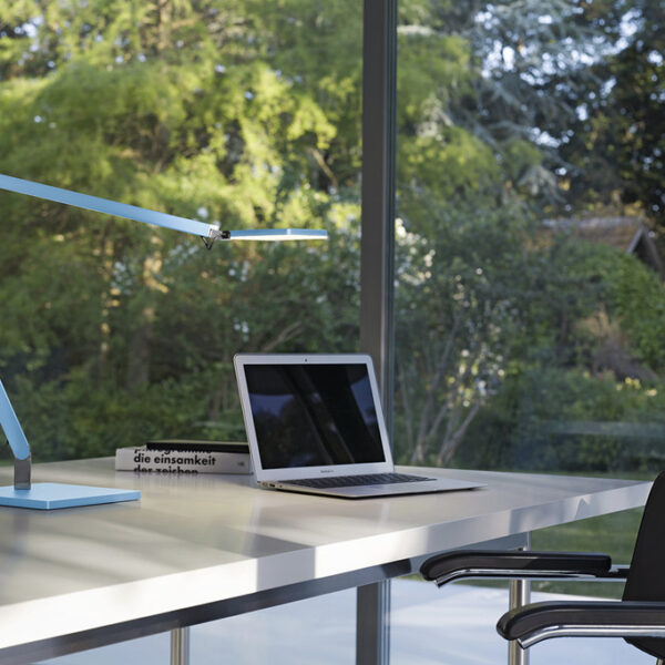 NIMBUS „Line Z“ Tischleuchte LEDPuristische LED Tischleuchte für den Office- und Homebereich mit nur 5 mm dünnem Leuchtenprofil. Lichtaustritt 100 % direktstrahlend. Leuchtenfuß und Leuchtenprofil aus